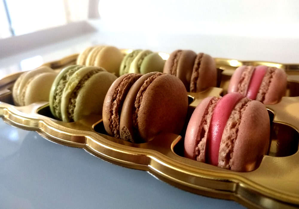 Deux coques de macarons qui renferment une crème glacée ou un sorbet. Le dessert parfait pour mettre l'eau à la bouche!